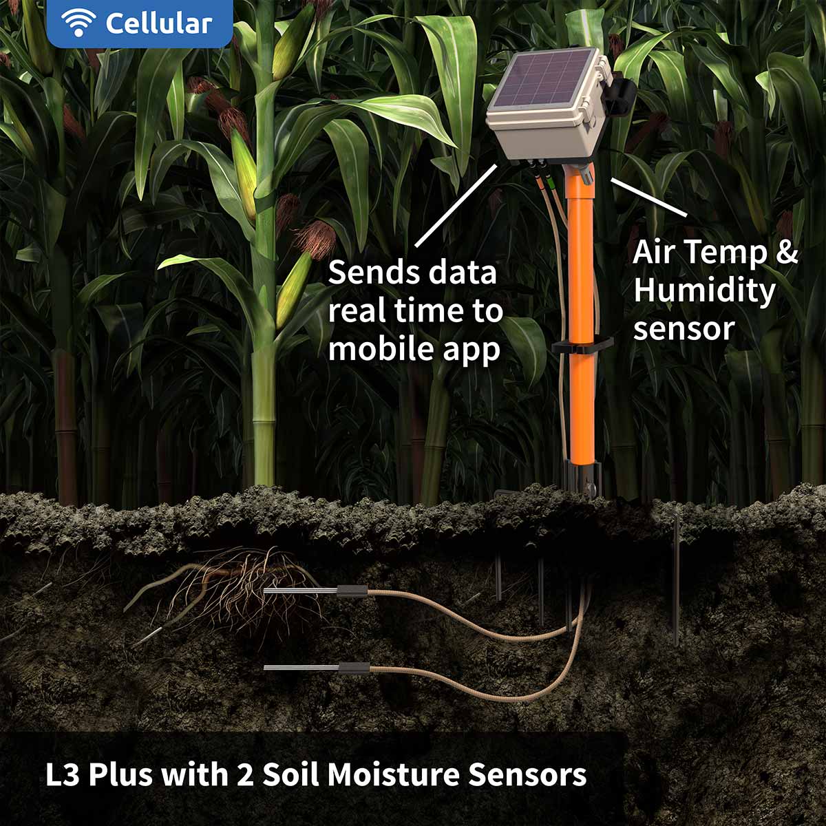 Monitor Any Crop Real Time, 24/7: EarthScout L4 Plus Cellular Soil Moisture Sensors are the perfect solution for monitoring your fields. It’s great for use on a farm, vineyard, or orchard, and for research, and education. It can monitor any crop, including corn, soybeans, potatoes, grapes, wheat, fruits, vegetables, citrus, nuts and rice.
