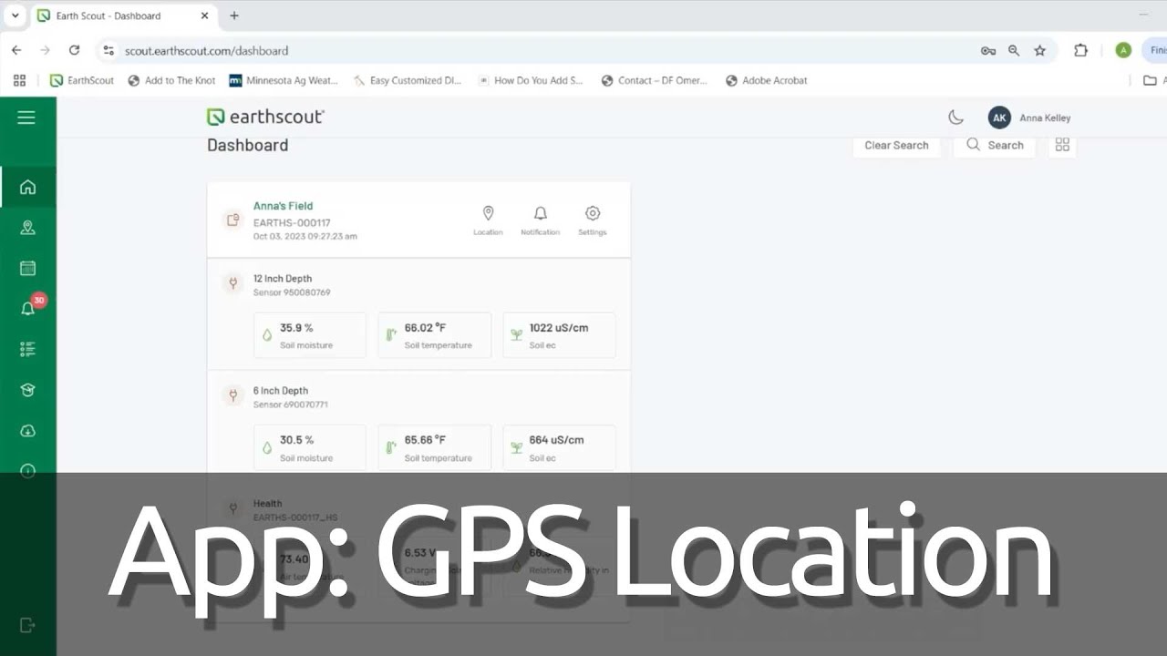 KNOW THE LOCATION OF YOUR EARTHSCOUT USING GPS: Use our GPS Location feature in the EarthScout Irrigation App to quickly find the location of your L4 Cellular Soil Moisture Sensor on a map.