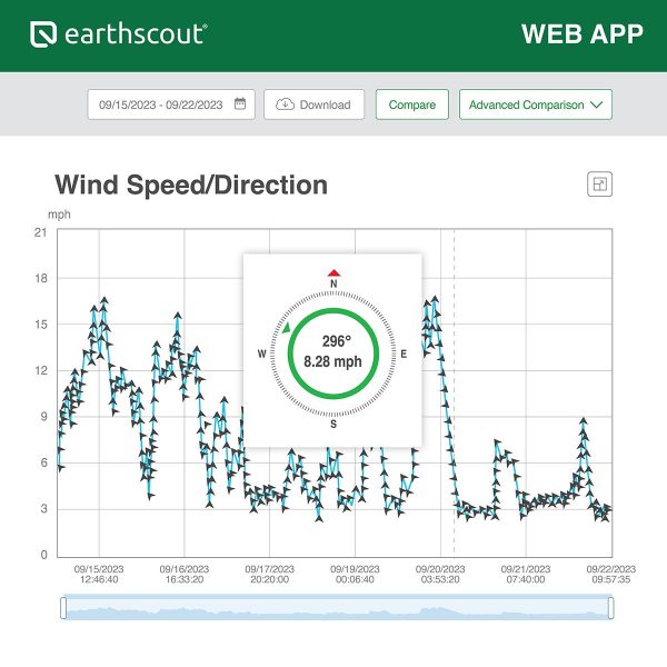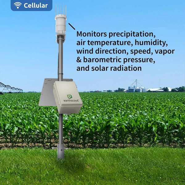 Monitor the precipitation, wind speed, wind direction, air temperature, humidity and 6 other weather variables in any field, anywhere, anytime. Easy to install, WeatherCub 1 Cellular uses IOT smart farming technology to send hourly weather data to the EarthScout app on your phone or laptop. WeatherCub 1 Cellular is commercial grade, has no moving parts and requires no maintenance. Includes a tilt sensor to ensure the weather station remains plumb. Designed for continuous deployment in harsh climates with extreme cold and heat, a redundant battery and solar panel ensures reliable service year-round, regardless of climate. Includes 6ft. pole with weather sensor array, solar panel, 12V battery with enclosure and mounting bracket, GPS, and ground screw. Includes 5 Years of No Cellular Fees, then only $24.99/month.