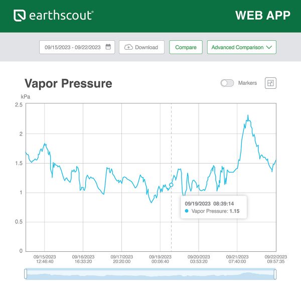 Vapor Pressure/Relative Humidity Sensor: Vapor pressure is measured every 60 seconds and records the instantaneous values. When it asks the sensor for vapor pressure, the sensor outputs average since last query.