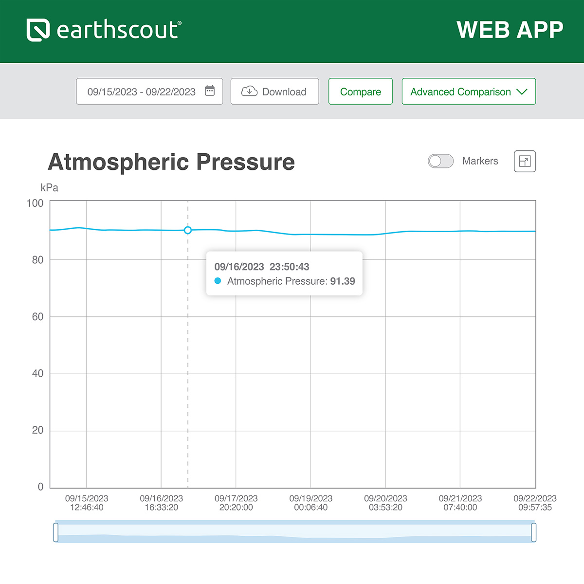 Barometric Pressure Sensor: Barometric pressure is measured once every 60 seconds and records the instantaneous values. When queried, the sensor outputs the average of the instantaneous measurements since the last query.
