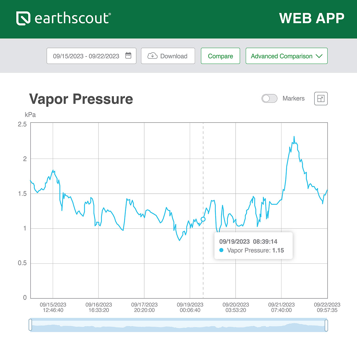 Vapor Pressure/Relative Humidity Sensor: Vapor pressure is measured every 60 seconds and records the instantaneous values. When it asks the sensor for vapor pressure, the sensor outputs average since last query.